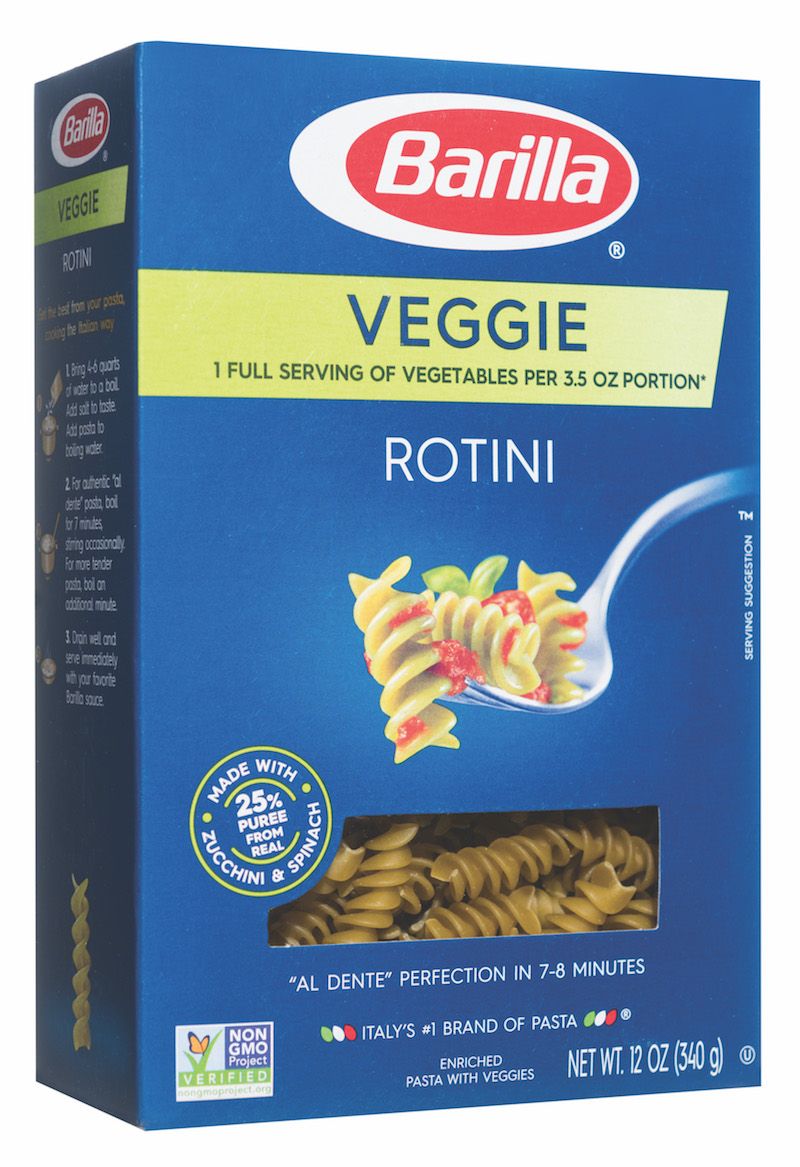 野菜を食べるのが嫌いな人(または家族に野菜を食べさせるのが難しい人)は、イタリアのパスタ大手のBarillaのこのベジパスタのラインは、野菜をこっそり食べるのに簡単な方法だそうです。 にんじんとトマトを使ったペンネ、ズッキーニとほうれん草を使ったロティーニとスパゲッティがあり、全粒粉パスタ75%と野菜ピューレ25%でできています。 試食したところ、ロティーニの食感は驚くほど心地よく(通常のパスタとほぼ同じ)、野菜の風味は感じられませんでした。 私たちは、ペストやウォッカソースとチキンソーセージの組み合わせが好きでした。 このロティーニには、他の強化全粒粉パスタと同様に、200カロリー、8グラムのタンパク質、41グラムの炭水化物、2グラムの食物繊維、そして多くのビタミンとミネラルが含まれています。